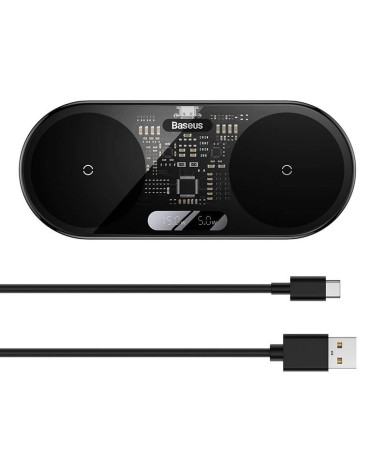 Dual Qi wireless charger Baseus Digital LED Display, 20W