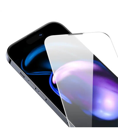 Il vetro temperato Baseus Corning offre un'adesione perfetta allo schermo, assorbendo gli impatti e migliorando la resistenza ai graffi. La sua elevata trasparenza (fino al 90% di trasmissione luminosa) assicura un'immagine chiara e colori fedeli, senza interferire con la funzione Face ID. Il rivestimento oleofobico previene macchie e impronte digitali, mantenendo lo schermo pulito e garantendo una risposta tattile fluida. Inoltre, un filtro integrato protegge l'altoparlante da polvere e particelle, preservando la qualità delle chiamate. È incluso uno strumento per facilitare l'applicazione.