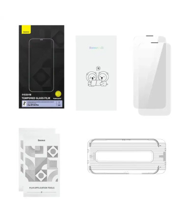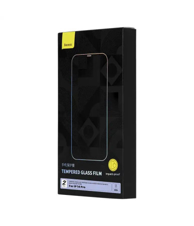 Proteggi il tuo iPhone 14 Pro con il vetro temperato Baseus Corning. Offre resistenza a graffi e urti, un filtro antipolvere per l'altoparlante e un rivestimento oleofobico.