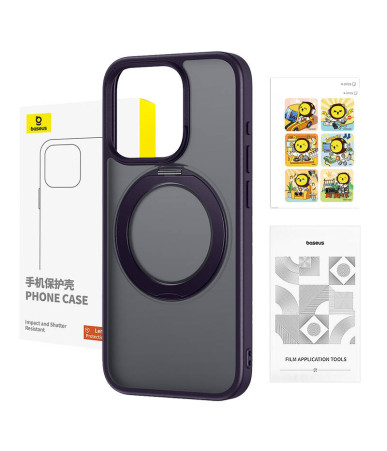 Phone Case Baseus SkyRing Magnetic with Stand for iP 14 Pro Max + tempered-glass and cleaning kit (purple)