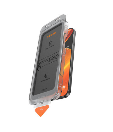 Proteggi il tuo iPhone 16 Plus con il vetro temperato Torras Install Master Privacy. Offre privacy avanzata, resistenza a graffi e cadute, e un'installazione senza bolle.
