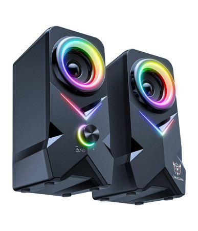 Altoparlanti da gaming Onikuma L2 con illuminazione RGB dinamica e suono stereo immersivo. Ideali per un'esperienza di gioco coinvolgente.