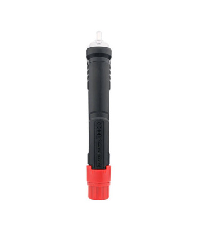 Questo strumento è progettato per la massima comodità e sicurezza d'uso. Permette di rilevare la tensione AC in un intervallo di 12-1000V (alta sensibilità) o 48-1000V (bassa sensibilità) con una frequenza di 50/60Hz. La funzione di rilevamento dei punti di interruzione e la capacità di distinguere tra cavi attivi e inattivi lo rendono uno strumento versatile per varie applicazioni. L'integrazione di una torcia LED facilita il lavoro in condizioni di scarsa illuminazione, mentre la funzione di spegnimento automatico dopo 3 minuti di inattività preserva la durata della batteria. L'indicatore di batteria scarica avvisa quando è necessario sostituire le batterie (2x AAA 1.5V).