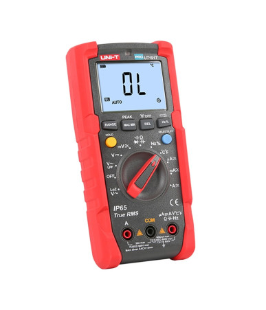 Il multimetro digitale UNI-T UT191T è uno strumento professionale progettato per l'uso industriale, anche in ambienti difficili grazie alla certificazione IP65 e alla resistenza a cadute da 2 metri. È ideale per la manutenzione di apparecchiature elettriche, la diagnostica di motori e la riparazione di sistemi elettrici.