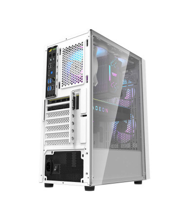 Case ATX bianco con pannello in vetro temperato e 3 ventole ARGB preinstallate per un'estetica accattivante e un raffreddamento efficiente. Ideale per build gaming e workstation.
