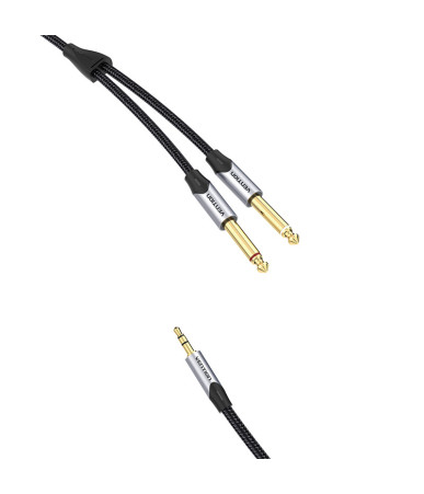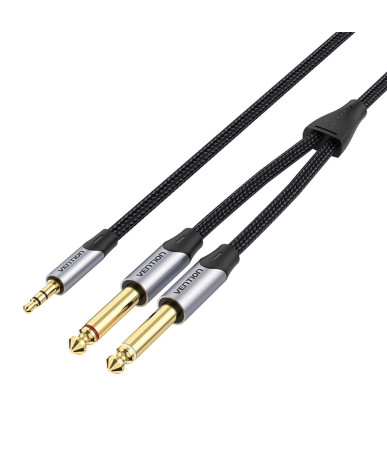 Cavo audio Vention BARHL da 10m per collegare dispositivi con jack da 3.5mm a sistemi audio con jack da 6.35mm. Ideale per studi, live e uso domestico.