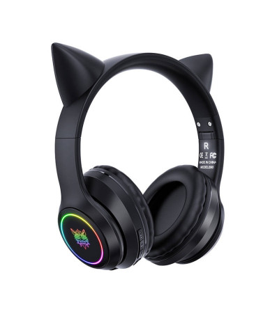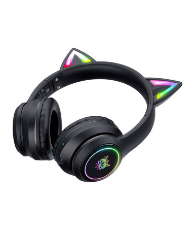 Cuffie gaming ONIKUMA B90 con design a orecchie da gatto RGB e connettività Bluetooth 5.3. Offrono suono Hi-Fi, microfono integrato e comoda vestibilità.
