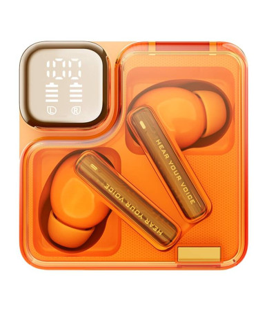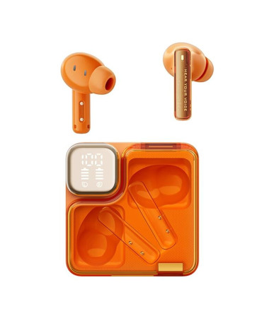 Le cuffie TWS QCY MeloBuds Neo T31 in arancione offrono un design futuristico, vincitore del MUSE Design Gold Award 2024, con una custodia trasparente in stile cyberpunk. Dotate di driver a membrana bio da 10mm, garantiscono un'eccezionale qualità audio con 9 impostazioni EQ personalizzabili.