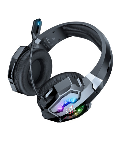 Cuffie gaming ONIKUMA B15 con connettività tri-mode (Bluetooth, 2.4G wireless, cablata) e illuminazione RGB. Ideali per un'esperienza di gioco immersiva.