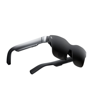 Occhiali AR con display Micro-OLED da 1080p per occhio e campo visivo di 46°. Offrono un'esperienza visiva immersiva con colori vividi e audio surround.