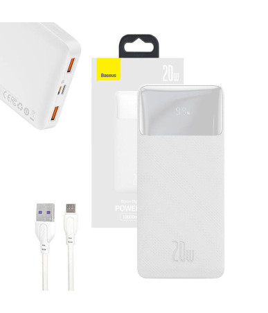Powerbank Baseus Bipow da 10000mAh con ricarica rapida 20W. Ideale per chi cerca un'alimentazione portatile affidabile e veloce per smartphone e altri dispositivi.