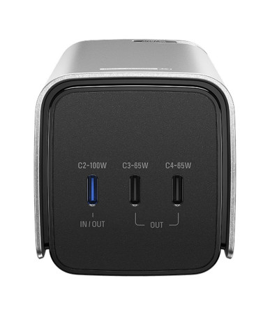 Il dispositivo è dotato di un cavo USB-C retrattile da 60 cm, eliminando la necessità di cavi aggiuntivi. Le quattro porte USB-C permettono di caricare simultaneamente fino a quattro dispositivi, inclusi due laptop ad alte prestazioni. Lo schermo LCD integrato fornisce informazioni sullo stato della batteria, mentre l'app EcoFlow consente il controllo smart e la personalizzazione delle impostazioni. La tecnologia X-VELO e i sistemi di protezione avanzati garantiscono ricarica efficiente e sicura, anche in condizioni ambientali difficili.