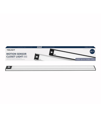 Illumina il tuo armadio con la luce LED Yeelight da 40cm. Dotata di sensore di movimento e luce calda a 2700K, si installa facilmente e offre un'illuminazione automatica e a mani libere.