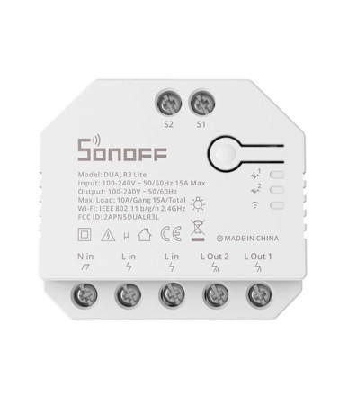 Trasforma i tuoi interruttori tradizionali in smart con Sonoff Dual R3 Lite. Controlla due dispositivi da remoto via app o comandi vocali. Ideale per luci, elettrodomestici e motori per tapparelle.