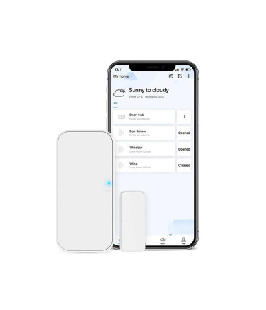 Sensore di porta/finestra smart wireless con hub S3 per il monitoraggio di aperture e chiusure. Ricevi notifiche in tempo reale e automatizza la tua casa.