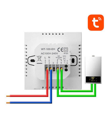 Dotato di un sensore NTC per una precisione di temperatura di 1°C, un display LCD chiaro e un'interfaccia touchscreen, il ZWT100 offre diverse opzioni di controllo, inclusa la programmazione settimanale (5+2 / 6+1 / 7 giorni con 6 fasce orarie giornaliere), modalità manuale e automatica. Funzionalità aggiuntive come il blocco bambini e la possibilità di raggruppare più termostati migliorano l'usabilità e la sicurezza.