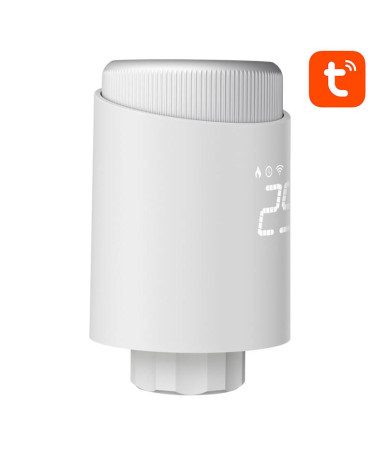 Valvola termostatica smart Zigbee per il controllo del riscaldamento. Gestisci la temperatura da remoto tramite app Tuya o assistenti vocali. Ideale per ottimizzare i consumi e il comfort domestico.