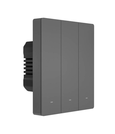 Interruttore smart WiFi Sonoff M5-3C-80 a 3 canali con pulsanti fisici. Controllo via app eWeLink, compatibile con Alexa e Google Home. Ideale per la gestione indipendente di luci e apparecchi.