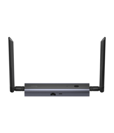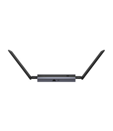 Offre opzioni di connessione versatili, tra cui Ethernet con supporto PoE per alimentazione e dati tramite un unico cavo, Wi-Fi e USB. Le due antenne da 5dBi assicurano un'ampia copertura del segnale. La gestione avviene tramite una console web accessibile via mDNS, che permette aggiornamenti firmware e configurazioni.